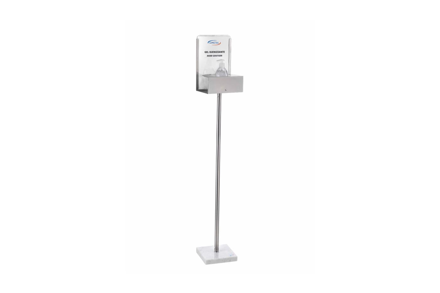 Colonnina autoportante in acciaio inox e base in marmo, perfetta per esporre un flacone gel igienizzante mani o disinfettante o guanti ecc..