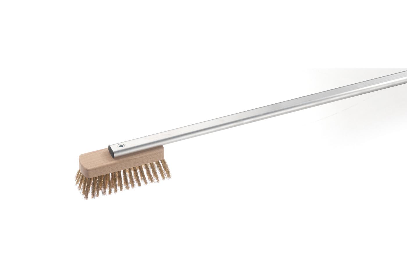 0.41kg Spazzola linea domestica con setole di ottone 16x5 cm e manico in alluminio non trattato. Disponibile in 2 misure di manico: da 120 cm e da 150 cm.