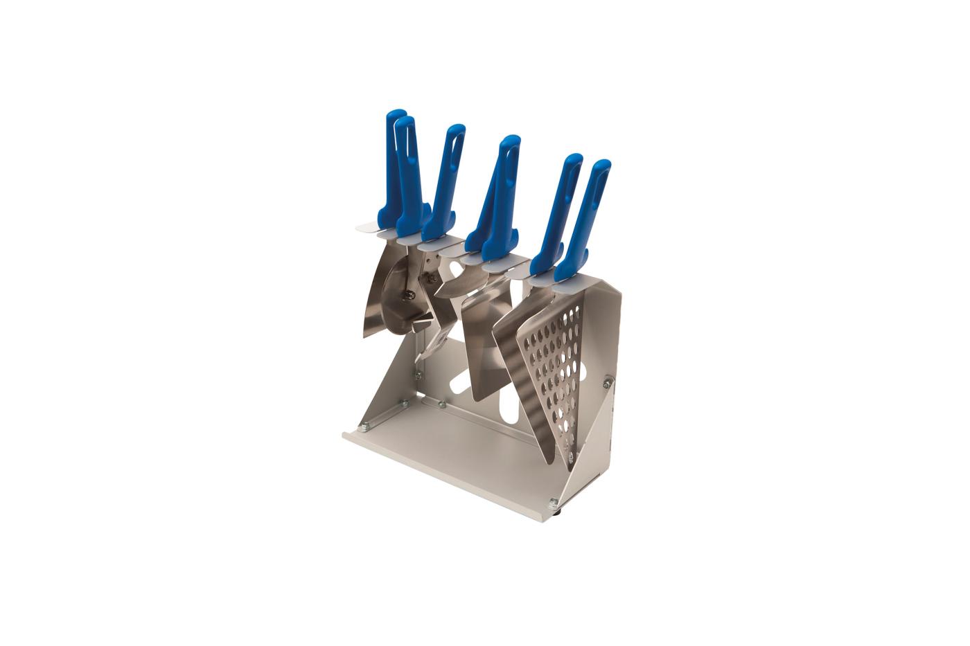 Porta accessori da banco, completamente in alluminio anodizzato. Può contenere fino a 9 accessori.